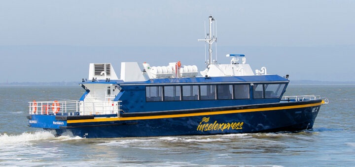 Schnellfähre „Inselexpress 2 “ offiziell in Dienst gestellt. Die neue Fähre verbindet Juist mit dem Festland und verfügt über eine Kapazität von 54 Passagieren.